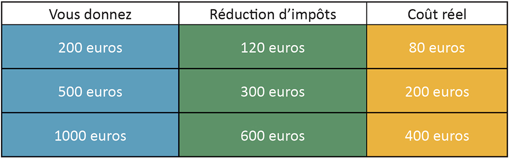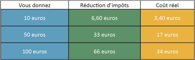 Selon la loi n° 2003-709 du 1er août 2003 relative au mécénat, le donateur peut bénéficier d’un taux de réduction d’impôt de 66 % du montant du don, la limite annuelle de 20 % du revenu imposable.