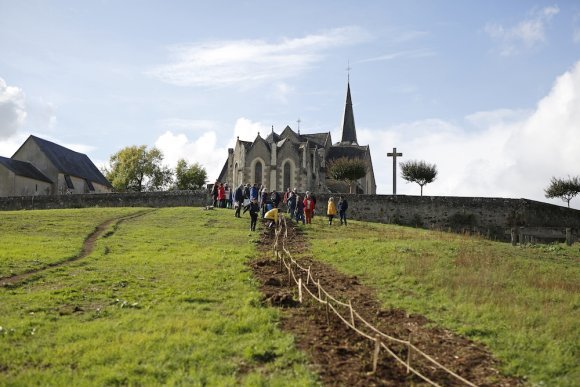 L’artiste Delphine Bretesché, dans le cadre d’une résidence d’auteur avec l’Esprit du lieu, a proposé de réaliser collectivement une œuvre dans le paysage. Le 10 novembre 2012 une ligne de deux mille bulbes de narcisses a été plantée dans le lieu-dit appelé Jardin de sainte Radegonde. Proche d’un site mérovingien, elle relie symboliquement la rivière la Logne au cimetière, en haut du coteau, en suivant le tracé d’une ancienne faille géologique. Pour cela Delphine avait travaillé étroitement avec les bénévoles de la bibliothèque, de la Bourse aux plantes ainsi qu’avec les écoles et les services municipaux Grace à son enthousiasme et son énergie incroyable, elle avait su entraîner avec elle petits et grands.